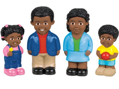 As tots explore these soft and safe dolls, they get a hands-on introduction to family—and develop cultural awareness! Our African American family includes 4 extra-chubby dolls made of soft, squeezable plastic that’s perfect for little hands. Largest doll measures 5 1/2" tall.