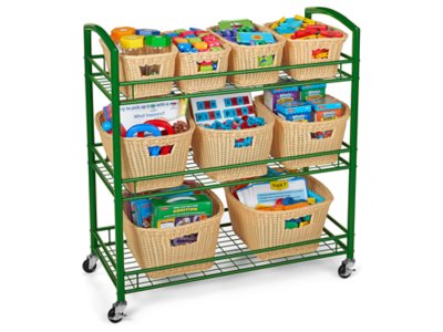 Our learning cart is perfect for classroom instruction, tutoring, after school programs—even summer school! It comes fully stocked with 9 roomy baskets filled with a huge variety of hands-on materials geared toward building and supporting foundational skills in reading, math and science—from fun-to-play games and giant sand timers to a STEM kit, lapboards and more. Best of all, we’ve included 20 double-sided cards featuring engaging, easy-to-follow activities and games using the materials—creating learning opportunities in an instant. Just roll the cart anywhere—indoors or out—and let the learning begin!