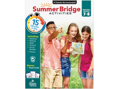 Keep kids learning all summer long! Designed to help bridge the summer learning gap between seventh and eighth grade, our activity book includes 12 weeks of skill builders, fitness activities, home science experiments, flash cards and more! From examining the effects of acid rain to solving word problems and learning new vocabulary, this teacher-recommended book is filled with engaging learning activities that keep kids geared up for eighth grade—while having fun! Book measures 8 1/2" x 11" and is 150 pages.