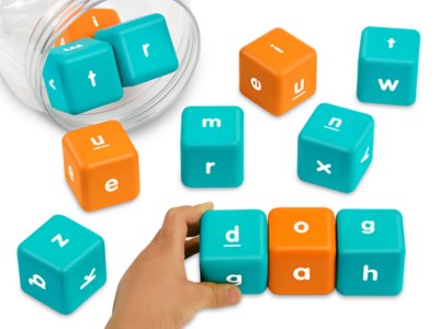 Kids develop essential reading skills with every roll of our hands-on activity dice! As students roll, they use the color-coded dice to get hands-on practice with CVC words. Plus, the jumbo dice are made of durable foam for a quiet classroom experience—perfect for independent learning and small groups! Set comes in a handy storage tub with 12 dice and an activity guide filled with lots of games. Dice measure 1 5⁄8".