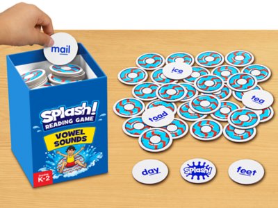 A quick, easy way to introduce vowel sounds—our super-fun pool-themed game is sure to make a “splash”! Students just draw an inner-tube card, read the word aloud and keep the card if they read it correctly…or start again if they draw a “Splash!” The first player to collect 10 cards wins! Game includes 108 cards. For 2-4 players. Cards measure 1 1/2".