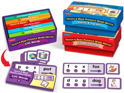 Customers love the Touch & Read Phonics Word Match for its tactile dots that help children sound out and blend words effectively. Students from preschool through elementary grades enjoy matching the colorful pictures to words, making it popular for classroom centers, small groups, and home use. The set particularly benefits struggling readers by keeping them engaged and focused during phonics practice.