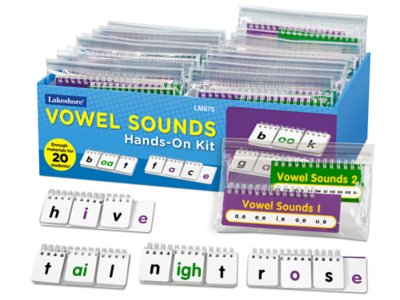 Here’s a hands-on way for students to master words with various vowel sound patterns! Perfect for independent, small-group or whole-class learning, our ready-to-use teaching kit features manipulatives that seamlessly integrate into any language program, providing critical, hands-on practice with an essential concept. As they flip the pages of the books to change beginning, middle and ending phonemes and create lots of words with different vowel sound spellings, students build on their skills and develop into successful readers! Kit includes 20 identical, prepacked vinyl pouches (one pouch for each of 20 students), each with 2 different flip books (one focusing on silent -e words and the other focusing on other vowel teams) with the vowel sound spellings highlighted for added reinforcement—in a storage box with a teacher’s guide. Pouches measure approximately 4 1/2" x 7 1/2". Individual student pack also available separately.