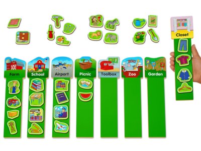 Magnetic rods give kids tons of practice with early language skills! Each durable wooden rod is magnetic—and shows a category for kids to match. Children simply place magnets right on each rod to sort different objects into categories like School, Picnic and Zoo! You get 8 rods, 32 magnets and an activity guide. Rods measure 9" long.Additional Information