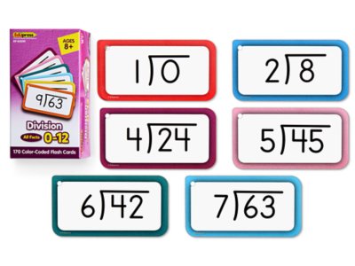 Division facts are easy to master—with these self-checking flash cards! Ideal for skills review, extra reinforcement and standardized test preparation, the pack includes 165 color-coded flash cards covering division facts through 12—all with answers on back, so it’s a breeze for students to check their work. Cards measure 3" x 5 3/4" and come in a handy storage box.