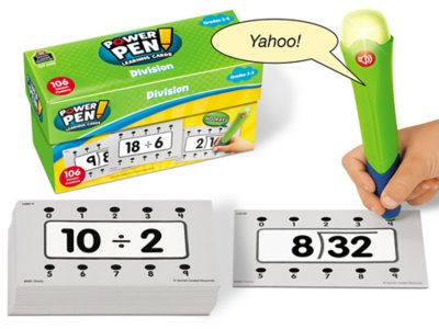Here’s a super-fun way to build division skills—with instant reinforcement! Kids just touch an answer with the special pen…and the pen tells them if they’re right or wrong. You get 53 double-sided cards and an answer key. Box measures 3 3/4" x 6 1/2". Power Pen sold separately.