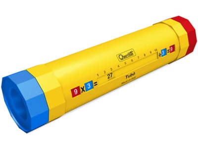 This handy, interactive tube makes it fun and easy to learn tons of multiplication and division facts! Just turn the two colored knobs to create a problem and watch the answer appear in the long center window. Plus, the tube’s compact size makes it easy to pack up and take along for on-the-go math practice! The durable plastic tube measures 8 1/4" in length.