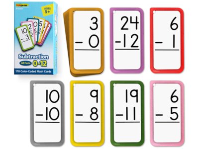 Subtraction facts are easy to master—with these self-checking flash cards! Ideal for skills review, extra reinforcement and standardized test preparation, the pack includes 169 color-coded flash cards covering subtraction facts through 12—all with answers on back, so it’s a breeze for students to check their work. Cards measure 3" x 5 3/4" and come in a handy storage box.