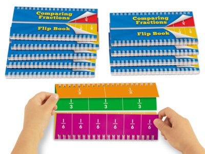 Our flip books make it super-easy to visualize equivalent fractions, compare fractions with different denominators and more! Each book has 2 sets of flips—simply turn the flips to see how one half is equivalent to 3 sixths, 2 halves add up to one whole, and more! Set includes 10 flip books; each measures 4" x 7".