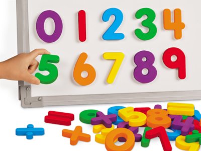 It’s easy to explore early math skills with the whole class…with jumbo plastic numbers that stick to any magnetic surface! The set includes 40 pieces—including numbers 0-9, plus operation signs. Numbers measure 2 3/4" tall. Magnetic board sold separately.