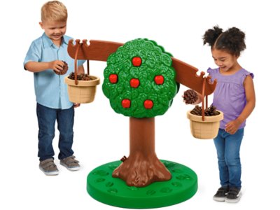 Strike a balance between skill building and fresh air fun! Designed to look like a charming apple tree, our durable, all-weather scale features 2 removable buckets that kids can use to collect and compare rocks, sand, leaves and more—the perfect way to introduce early measurement concepts outdoors! Rugged plastic, double-sided scale includes adjustable feet for easy leveling on uneven surfaces, plus a “trunk” that can be filled with sand for stability. Assembly required.