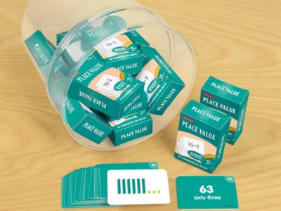 There are so many ways to play with our fun-filled math cards—and master place value skills along the way! Students just grab a deck to use as traditional flash cards…or follow simple directions to play skill-building card games—from place value war to slapjack! The tub includes 18 decks of cards and a guide featuring several card games. Cards measure 1 3/4" x 2 1/2".