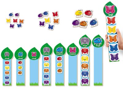 Develops skills in sorting by size, sorting by attribute and comparing sizes.