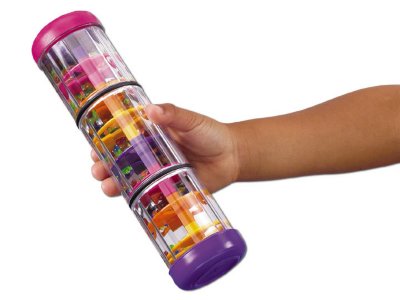 Little ones will love shaking out tons of fun rhythms with this colorful plastic rainstick! The jumbo rainstick has 8 fun levels inside for the beads to rain down. Rainstick measures 8" tall.