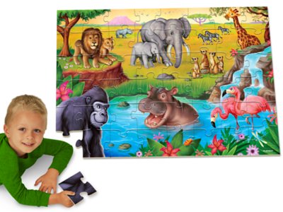 Children go on an adventure-filled safari as they put together this giant floor puzzle! From lions and meerkats to zebras and elephants, the puzzle highlights a variety of beautiful creatures, encouraging children to identify and observe each one. The sturdy, 48-piece puzzle features bright, inviting details kids will love to complete, building fine motor control, concentration and problem-solving skills along the way. The self-correcting puzzle measures 2' x 3'.
