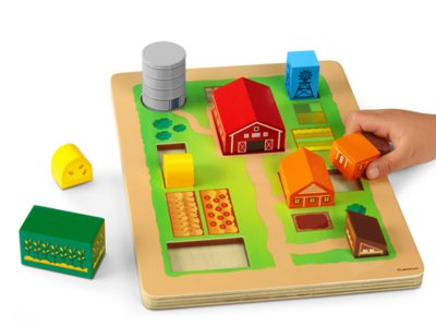 Plan and build a rural farm community—with our fun-to-solve wooden puzzle! This innovative puzzle has a sturdy wooden tray with cutout spaces to fit the 3-D building pieces. Kids use problem-solving and spatial reasoning skills to arrange the pieces—either alone or in combinations—until they find the one solution where all the pieces fit in place! Includes 9 pieces. Puzzle measures 8 1⁄2" x 11".