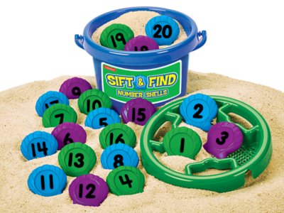 Children build number skills as they sift…and make exciting discoveries with every scoop! Our unique shells are printed with numbers 1-20…just add them to any sand play activity to reinforce early math concepts like counting, number recognition, addition and more. You get 20 plastic shells, a sifter and a guide, all in a 6 3/4" bucket.