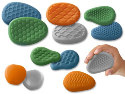 Kids love to squeeze, rub and twist these super-soft, tactile “stones”! Featuring bumps, grooves, ridges and other irresistible textures, the stones are perfect for use in any calming center or during quiet time—encouraging relaxation, focus and mindfulness. Set includes 12 dishwasher-safe silicone stones in 6 designs and 4 colors; largest stone measures approximately 2 5/8".