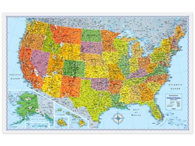 Showcase the United States with a map featuring eye-catching colors and graphics that make it the perfect reference for your classroom! The wall map is printed on high-quality, 80-lb. paper, with clearly labeled states, capitals and other cities, national parks and time zones, plus color-matching relief and other physical features. Unfolded map measures 32" x 50".