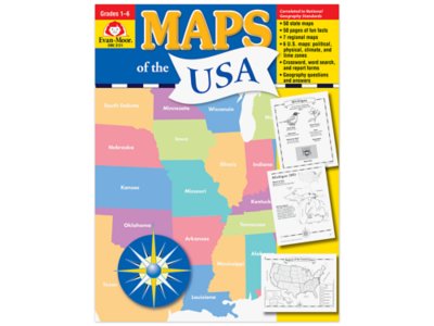 This handy reproducible resource will help students become more knowledgeable about the 50 states, the regions of the United States and the geography of the country—with up-to-date regional, political, physical, thematic and blank maps and corresponding activities! Plus, the standards-based book features teacher support pages and a review section with worksheets, a crossword puzzle and a word search—all designed to help students demonstrate what they’ve learned. Paperback book measures 8 1/2" x 11" and is 128 pages.