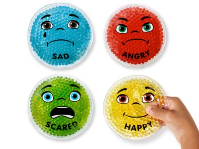 Our fun-to-touch Emotion Friends provide a unique sensory experience—as children explore how they’re feeling and learn to regulate their emotions! Four different gel-bead friends have an illustrated face and a corresponding emotion word on front, plus colorful gel beads inside that help soothe kids with every squeeze! You get 4 Emotion Friends in 4 colors, plus a guide; each friend measures 4".