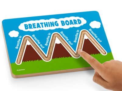 Children master breathing techniques, learning to breathe deeply and mindfully, as they trace their way along our simple-to-use board! The board features easy-to-read printed directions alongside a smooth, grooved pathway that travels up and down three mountain peaks. As kids slowly move a finger over each mountain, they practice taking deep, calming breaths—and learn to regulate their emotions! You get a durable wooden breathing board and a guide; board measures 5 1/2" x 8 1/2".