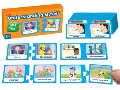 Kids explore their feelings with this set of 20 hands-on match-ups! Each self-correcting puzzle is made up of 2 captioned pictures—one depicting an everyday scenario children may encounter and the other showing a positive outcome. As kids match up each pair, they learn about their emotions and see how feelings influence behavior. The match-ups also help children identify their social-emotional strengths and opportunities for improvement. Each match-up measures 3 1/4" x 8".