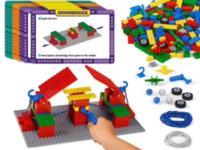 Young engineers boost STEM skills as they complete one hands-on challenge after another—from constructing a spinning windmill to building a solvable maze! Students simply choose a challenge card, use the snap-together building pieces to engineer a solution…and then test their creation, revising and retesting until their design is successful. Our kit includes over 250 building pieces and 10 double-sided challenge cards with possible solutions on the back. Cards measure 8 1⁄2" wide.