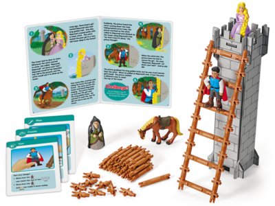 Kids use STEM skills to help Rapunzel! Perfect for building problem-solving skills, the kit includes a story card that presents a dilemma for kids to solve. Children have to plan, create and test solutions to help a prince scale a tower to rescue Rapunzel! The kit comes with a STEM-focused story card, 60 plastic ladder builders, 4 figures, a plywood tower, a guide, plus student and teacher cards with lesson plans and full support. Tower measures 15 3/4".Additional Information