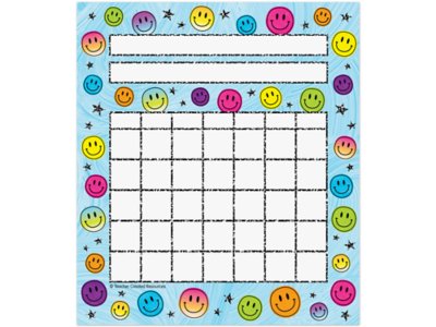 These bright, smiley face–themed individual incentive charts are a great way to motivate students! Label each chart with a student’s name and a goal or task…then track the student’s progress in homework, classroom assignments, attendance, good behavior and more. Each chart features seven columns to accommodate all seven days of the week, plus five rows with squares big enough to fit stickers. Pack includes 36 incentive charts; each measures 5 1/4" x 6".