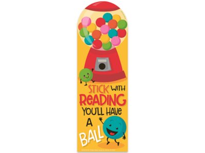 These colorful bookmarks feature super-silly gumball characters and a “punny” saying—plus a long-lasting scent that makes reading even more fun! Pack includes 24 bubble gum-scented bookmarks; each measures 2" x 6".