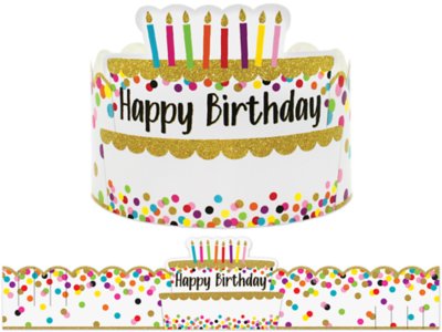 Students will wear these festive birthday crowns with pride! Each crown features colorful glittery confetti and a “Happy Birthday” message topped by cute candles—perfect for birthday celebrations for any age! It’s a great way to celebrate the birthday star! Set includes 30 adjustable birthday crowns; each measures approximately 5" x 24".