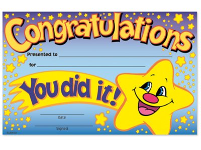 A cinch to customize, these colorful, star-themed awards make it fun and easy to recognize students’ hard work and achievements! Pack includes 36 cardstock awards; each measures 5 1/2" x 8 1/2".