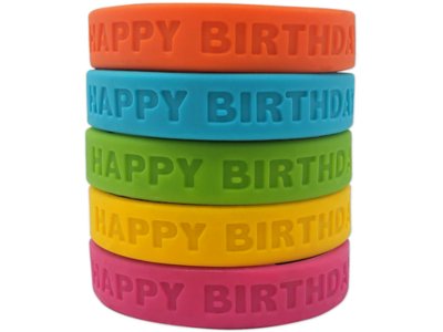 Celebrate students’ birthdays with brightly colored wristbands they’ll love to wear! Pack includes 10 silicone, latex-free wristbands in 5 colors; each wristband measures 7 1/4" and complies with all Consumer Product Safety Commission standards.