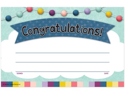 Printed on sturdy paper, these colorful awards will become keepsakes for every youngster who receives one! And the blank lines allow for personalization to build self-esteem. Pack includes 30 awards; each measures 5 1/2" x 8 1/2".
