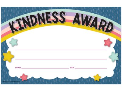 Printed on sturdy paper, these colorful awards will become keepsakes for every youngster who receives one—and a great way to acknowledge acts of kindness in your classroom! The blank lines allow for personalization to build self-esteem. Pack includes 30 awards; each measures 5 1/2" x 8 1/2".