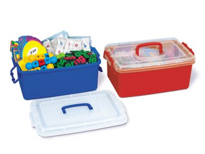 Classroom supplies really stay put—with our rugged locking storage caddy! The caddy features a snap-lock translucent lid…plus a tough, easy-tote handle that lets you carry the caddy anywhere. Plastic caddy measures 13"l x 8"w x 6 1/4"h.