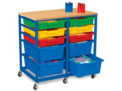 Our mobile organizer really stores it all—and it’s a cinch to move anywhere in the classroom! The durable metal center features 5 rows of removable plastic trays in 2 different sizes, plus 6 locking casters that make it easy to set up the center in just the right spot—then roll it out of the way! Assembly required.