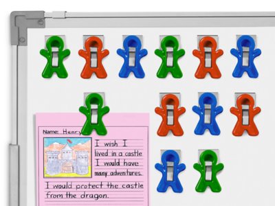 These kid-pleasing, people-shaped magnet clips are a delightful way to showcase student work, display classroom communication and stay organized! Plus, they securely adhere to any magnetic surface—from filing cabinets to magnetic whiteboards. Set includes 12 durable plastic magnets in 3 colors; each magnet measures 2 1/8" tall. Magnetic board sold separately.