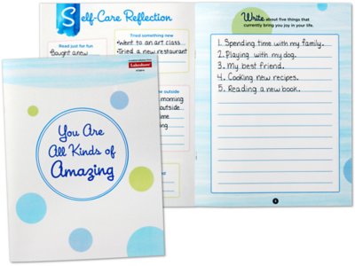 Filled with opportunities to reflect, find joy, practice gratitude and more, this thought-provoking journal lets teachers write, draw and doodle their way to wellness! From self-affirmations and a joyful collage project to open-ended writing prompts, goals and lists, the journal is packed with activities designed to help teachers see for themselves that they are “all kinds of amazing”! The full-color, 8" x 10 1/2" journal is 44 pages.