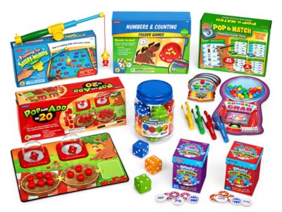 Help students develop grade-level foundational math and language skills—with our all-in-one bundle packed with engaging games that make learning a blast! The ready-to-use bundle includes an irresistible magnetic fishing game designed to improve sight-word recognition…“popping” games that bring excitement to math and language practice…giant dice that add big fun to all sorts of activities...and so much more!Additional Information