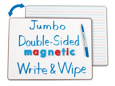 Our extra-large board is ideal for whole-class lessons, modeled writing and more! It features ruled baselines on one side and blank writing and drawing space on the other. The magnetic board is made from tempered hardboard and measures 12" x 15 3/4". Accessories sold separately.