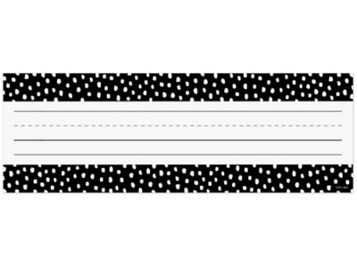 Featuring fun white polka dots against a black background, these handy nameplates are a must-have for the classroom! Use them to personalize student desks, cubbies, seats, take-home bags, classroom cabinets, folders, library book boxes and more! Pack includes 36 nameplates; each measures 3 1/4" x 9 1/2".