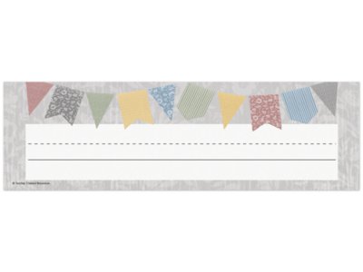Use these gray nameplates featuring fun hanging pennants to help teachers and visitors learn students’ names…label learning centers, storage areas, portfolio collections and word banks…and more! Pack includes 36 nameplates; each measures approximately 3 1/2" x 11 1/2".