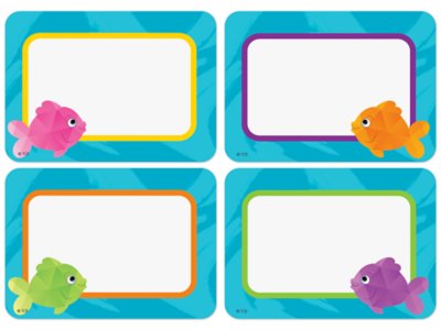 These colorful, fishy name tags are ideal for parent-teacher conferences, back-to-school events, field trips, classroom labels and more! Pack includes 36 self-adhesive name tags in 4 designs; each name tag measures 2 1/2" x 3 1/2".