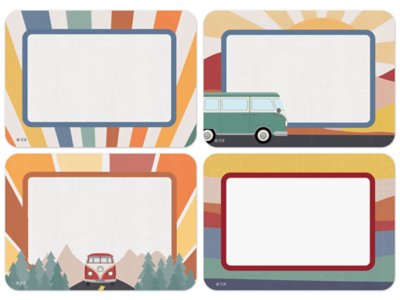 These vibrant, adventure-themed name tags in warm colors are ideal for parent-teacher conferences, back-to-school events, classroom labels and more! Pack includes 36 self-adhesive name tags in 4 designs; each name tag measures 2 1/2" x 3 1/2".