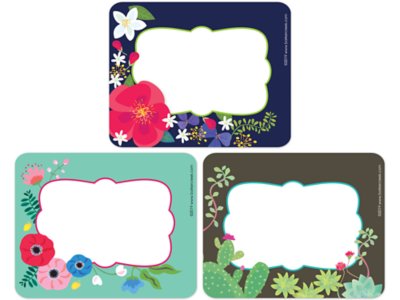 These beautiful, stylish name tags are sure to add a colorful touch to every learning environment! The brightly illustrated name tags are perfect for the first week of school, field trips, assemblies, special visitors, staff meetings and more! They can also be used to personalize file folders, binders and notebooks…as nameplates for your classroom library…and to label learning center activities and supplies—the possibilities are limited only by your imagination! Pack includes 45 self-adhesive name tags in 3 plant-themed designs; each name tag measures 2 3/4" x 3 1/2".