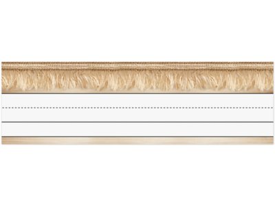 These nameplates make it easy to label and organize your classroom! Featuring a natural wood theme, a stylish photographic fabric fringe border and ample space for writing names, each of the 36 nameplates measures approximately 3" x 9 1/2".