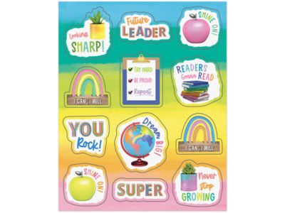 These colorful stickers are perfect for motivating and rewarding students…and add a fun touch to notes, calendars and completed student work! The eye-catching motivational stickers bring encouragement and positive vibes to the classroom with various messages of encouragement. Pack includes 6 sheets, for a total of 72 acid- and lignin-free stickers in 12 designs; largest stickers measure 1 2/5" x 1 5/8".