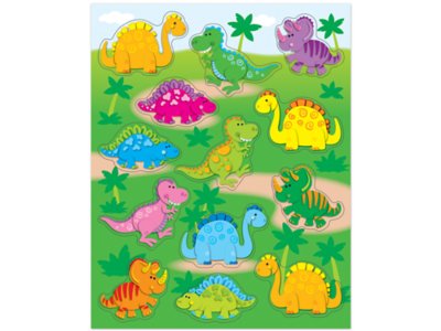 These fun, colorful stickers are perfect for motivating and rewarding students…featuring adorable dinos! Pack includes 6 sheets, for a total of 78 die-cut, acid- and lignin-free dinosaur stickers in various designs; each sticker sheet measures 4 1/2" x 5 5/8".